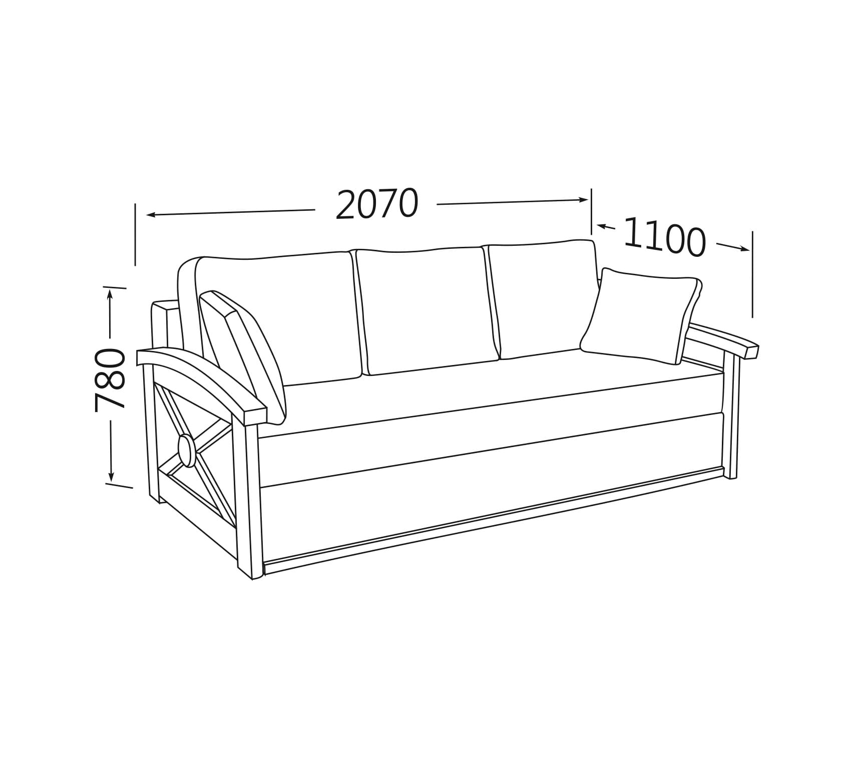 Розмір в зібраному вигляді, мм: 2070x1100x780;