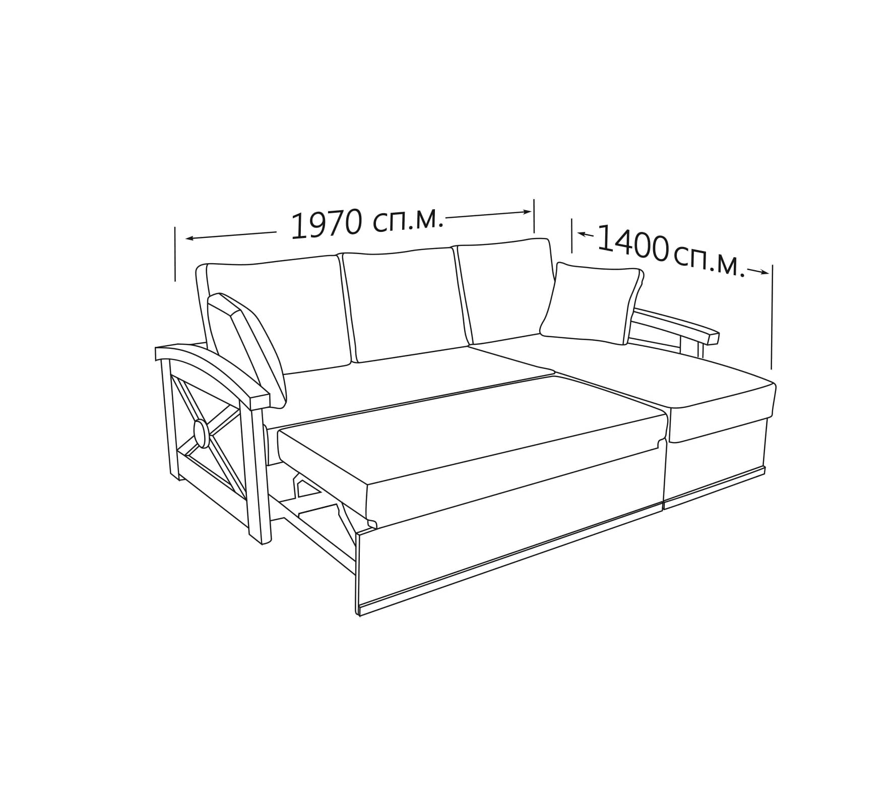Розмір спального місця, мм: 1970x1400;